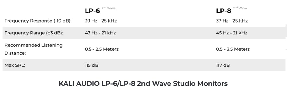 Below are the specifications for Kali’s LP6 monitors, which meet the Dolby specifications. You can see from the specifications that the LP6s are appropriate if the speakers are less than 2.5 meters from the listening position, while the LP8s can be placed up to 3.5 meters away.