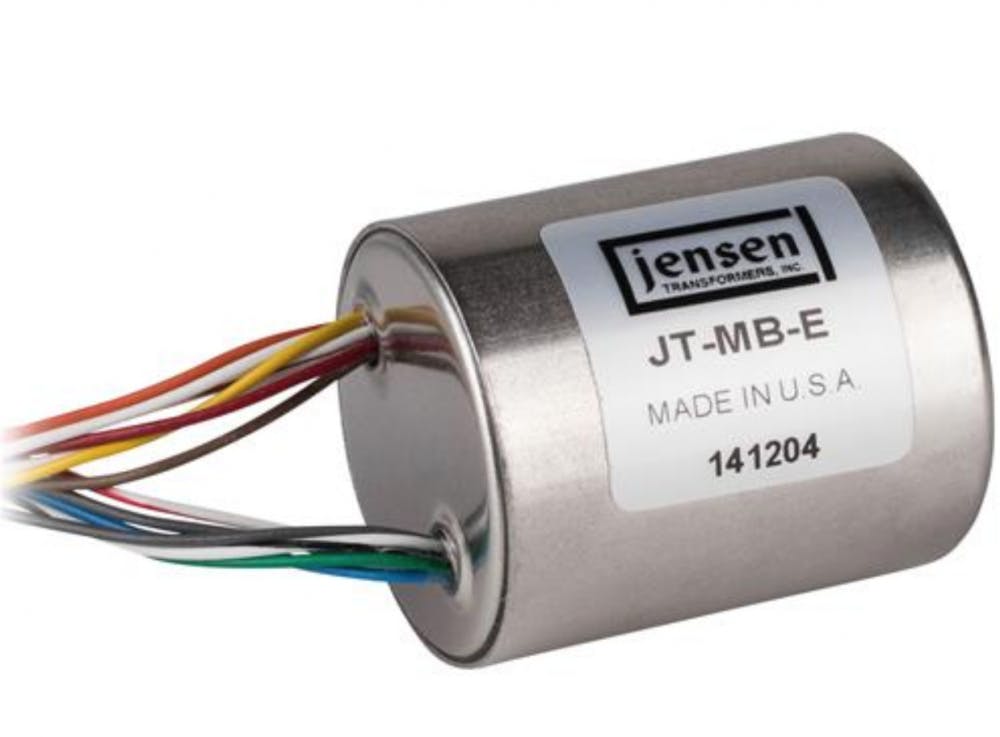 The Jensen JT-MB-E Microphone Bridging Transformer excels with only 2.2dB of insertion loss, which is easily made up by the mic preamps. There are four separate windings (one primary and three secondary windings) with Faraday shields4 for each winding with up to 30dB of magnetic shielding by way of its mu-metal5 housing.