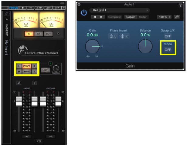 It is also useful to sum to mono often while mixing as well. Although technically playing back through two speakers, the stereo separation on smartphones and laptop speakers is either non-existent or artificially enhanced. Single device Bluetooth and Sonos speakers often sum the signal together for you. If your DAW doesn’t have a convenient way to monitor in mono, the output section of something like the Scheps Omni Channel from Waves provides easy toggling between mono/stereo.