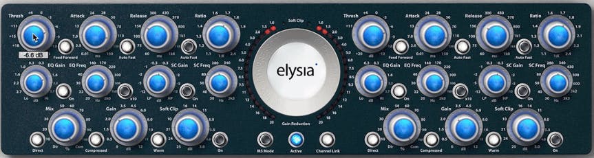 The Fairchild is an easy one. It has instant attack times and long release times which are simply presets that you can choose from. Fortunately, the ratio on the 670 starts very low, under 2:1, and gradually increases to limiting as more gain reduction happens. The Fairchild will tame instant peaks and gently glue the track together with very low distortion while providing color from multiple tubes and transformers in the signal path. The Fairchild works well on music that is not bass- or drum-heavy. Its fast attack can kill the power of kick drums and powerful basses and 808s. I’m usually happy with the 670 providing 0.5 – 1 dB of compression on a full mix. Be aware that some of the release times can be well over 10 seconds, so read the manual to learn about its unique time-constants.