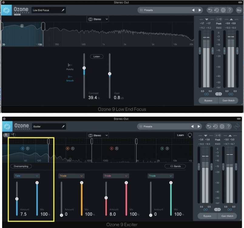 Ozone 9 from iZotope includes several mastering modules designed for low register enhancement. Low End Focus and the multi-band Exciter are both tools to add subtle warmth and focus to the bottom and help glue the mix together.