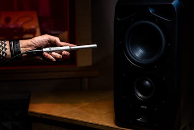 Now that your room is acoustically treated, it’s essential to calibrate your monitors so they work optimally with the unique frequency response curve of your studio space. Most modern speakers include some onboard DSP to compensate for things like reflections due to walls or corners behind or close to the speakers. These simple EQs are often just coarse two- or three-position dipswitch adjustments. While useful, these EQ controls don’t compare with accurately calibrating your monitors using software-based analysis and correction like that in Sonarworks Reference.