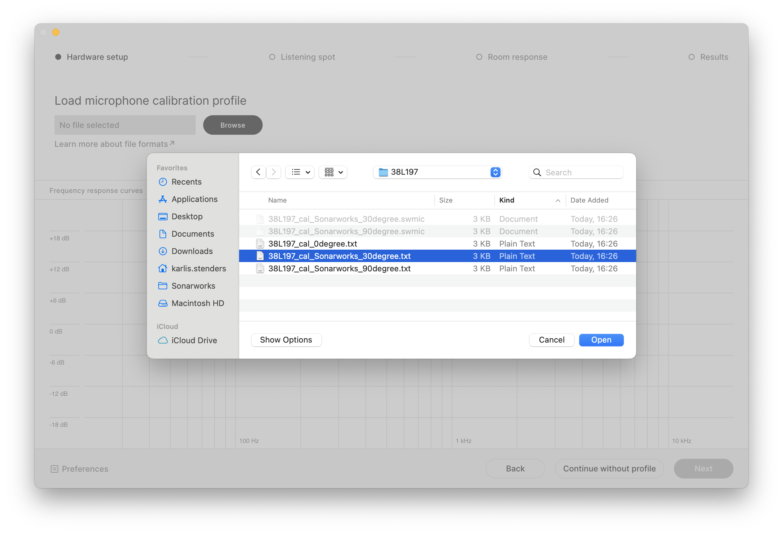 Click on 'Browse' and select the Microphone Profile 30° TXT file.