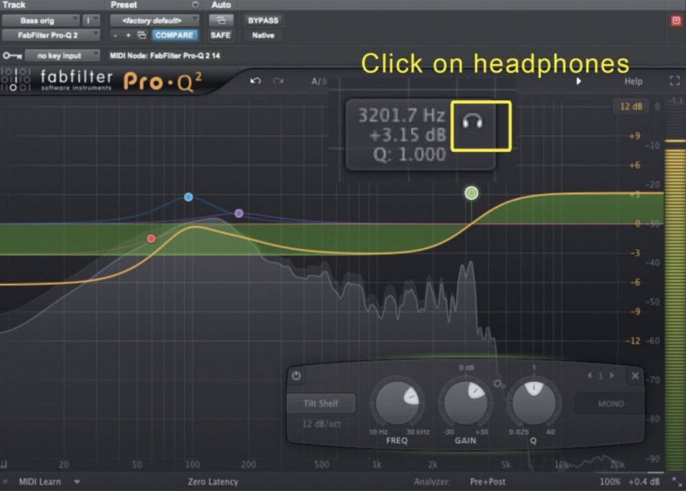 You can also Option+Click on a particular EQ point to solo that band with its Q setting.