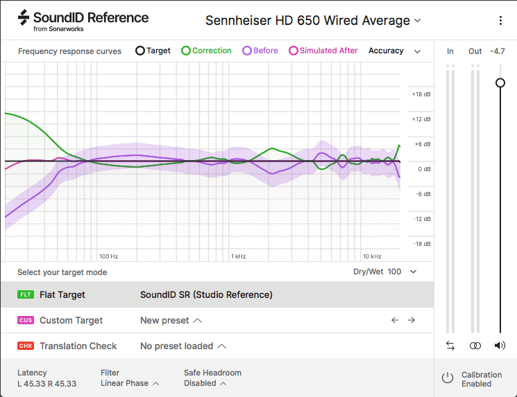 If you are like me, you’ll want to listen to your mix through both your headphones and your reference monitors to get a broad perspective on your mix. Your perception of stereo imaging and mix balances will differ between headphones and speakers, so it is important to get a sense of how a mix sounds in both contexts. You may even have multiple sets of speakers for reference. Each of these scenarios requires a different corrective equalization curve from Reference.