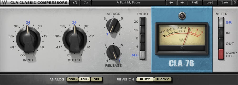 If you want the kick and snare to feel like they’re in your face, aim for 3-6dB of gain reduction. With this much compression, you really start hearing your compressor working and its attack, release, and ratio settings become very important.
